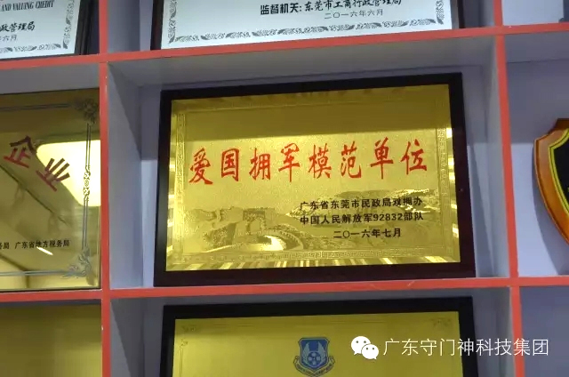 2016年10月11日下午,原東莞市委常委、東莞軍分區司令員王福廣蒞臨守門神科技集團參觀指導 董事長孟豪率營銷中心總監、副總監陪同接待。首先,司令員參觀了守門神科技集團琳瑯滿目的榮譽資質,例如,國家級高新技術企業、廣東省名牌產品、中國警用裝備十大品牌、全國公安系統警用裝備推薦品牌、熱心公益企業、愛國擁軍模范單位等一系列榮譽。司令員一一詢問了解,對守門神的基于離子遷移普的爆炸物毒品探測、高分子材料防彈防刺等產品的核心技術表示贊揚及肯定,也對公司擁軍愛國模范行為表示感謝。