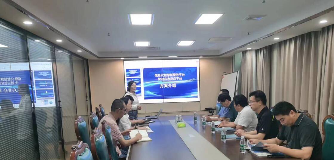 當天,領(lǐng)導(dǎo)一行到達我公司后,受到了熱烈的歡迎。首先,我司莊總監(jiān)向領(lǐng)導(dǎo)介紹了公司的發(fā)展情況、經(jīng)營理念以及未來的發(fā)展規(guī)劃。從社會管理、基層監(jiān)管、快速處置等多方面,闡述了智慧新警務(wù)平臺系統(tǒng)如何為警務(wù)提供的全方位信息化解決方案。集團張經(jīng)理對圖碼聯(lián)偵系統(tǒng)進行了詳細介紹,從人碼關(guān)聯(lián)、車碼關(guān)聯(lián)、軌跡查詢碰撞等主要功能,闡述了圖碼聯(lián)偵系統(tǒng)的重大突破,雙方均表示這是一次相互促進、共謀未來的契機,希望能將這些技術(shù)應(yīng)用于臨潁縣的建設(shè)發(fā)展中。